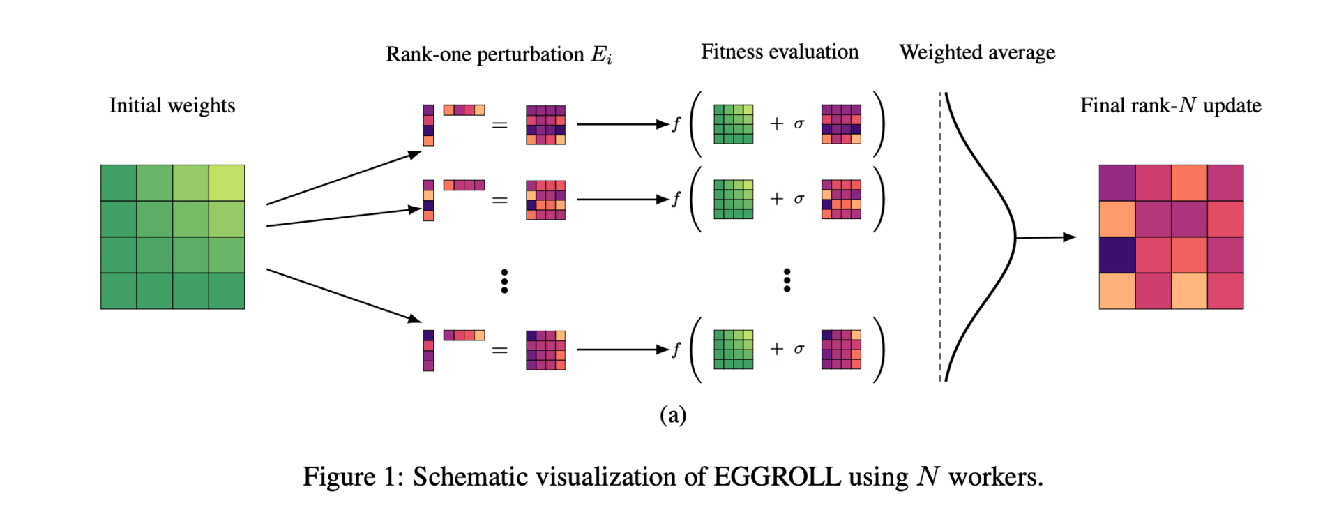 Training massive neural networks with billions of parameters is a major challenge, especially when using evolution strategies (ES) for optimization without backpropagation. While ES methods excel at handling non-differentiable or noisy goals and scale well through parallelization, the standard approach becomes too slow and memory-heavy for large models. This happens because generating and processing full-sized matrix perturbations across many workers demands immense computational resources.