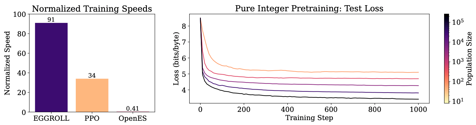 Experimental results show that EGGROLL boosts training throughput by a hundred times for billion-parameter models at large population sizes, nearly matching the efficiency of batch inference. This advance makes evolution strategies far more practical for modern AI systems and makes it a feasible alternative where backpropagation isn't feasible.