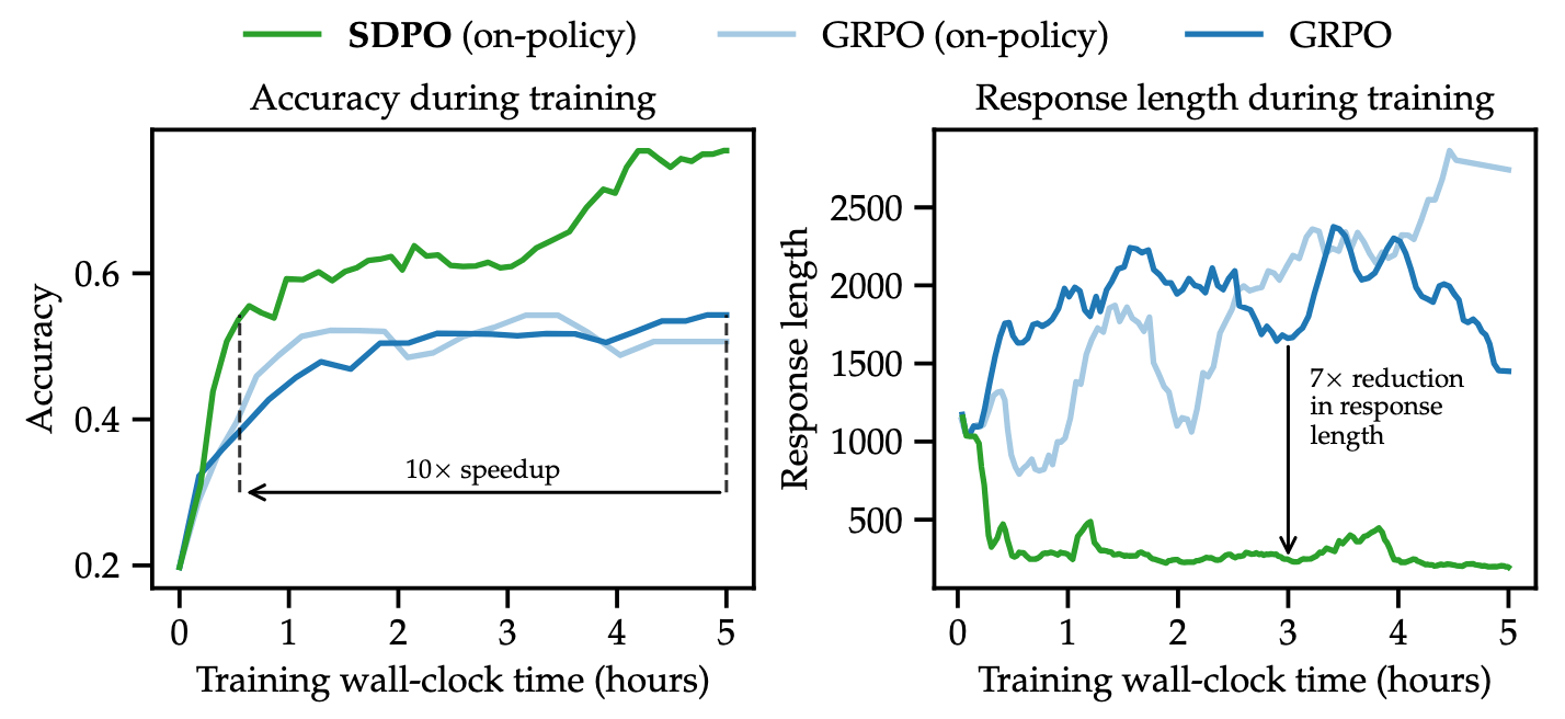 To solve this, researchers developed a method called Self-Distillation Policy Optimization (SDPO), which allows the model to act as its own mentor. When the model generates an answer that fails, it takes the detailed feedback from the environment and re-evaluates its original attempt. With this new context, the model can retrospectively see exactly where it went wrong and calculate what it should have done differently. It then "distills" this insight back into its own network, effectively updating its behavior to match this wiser version of itself.