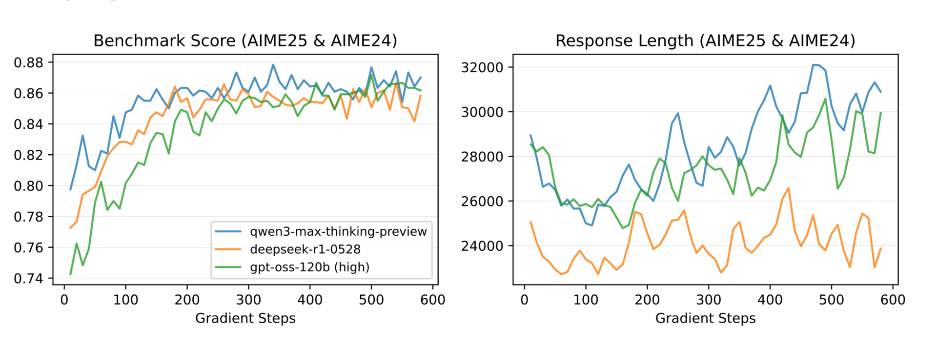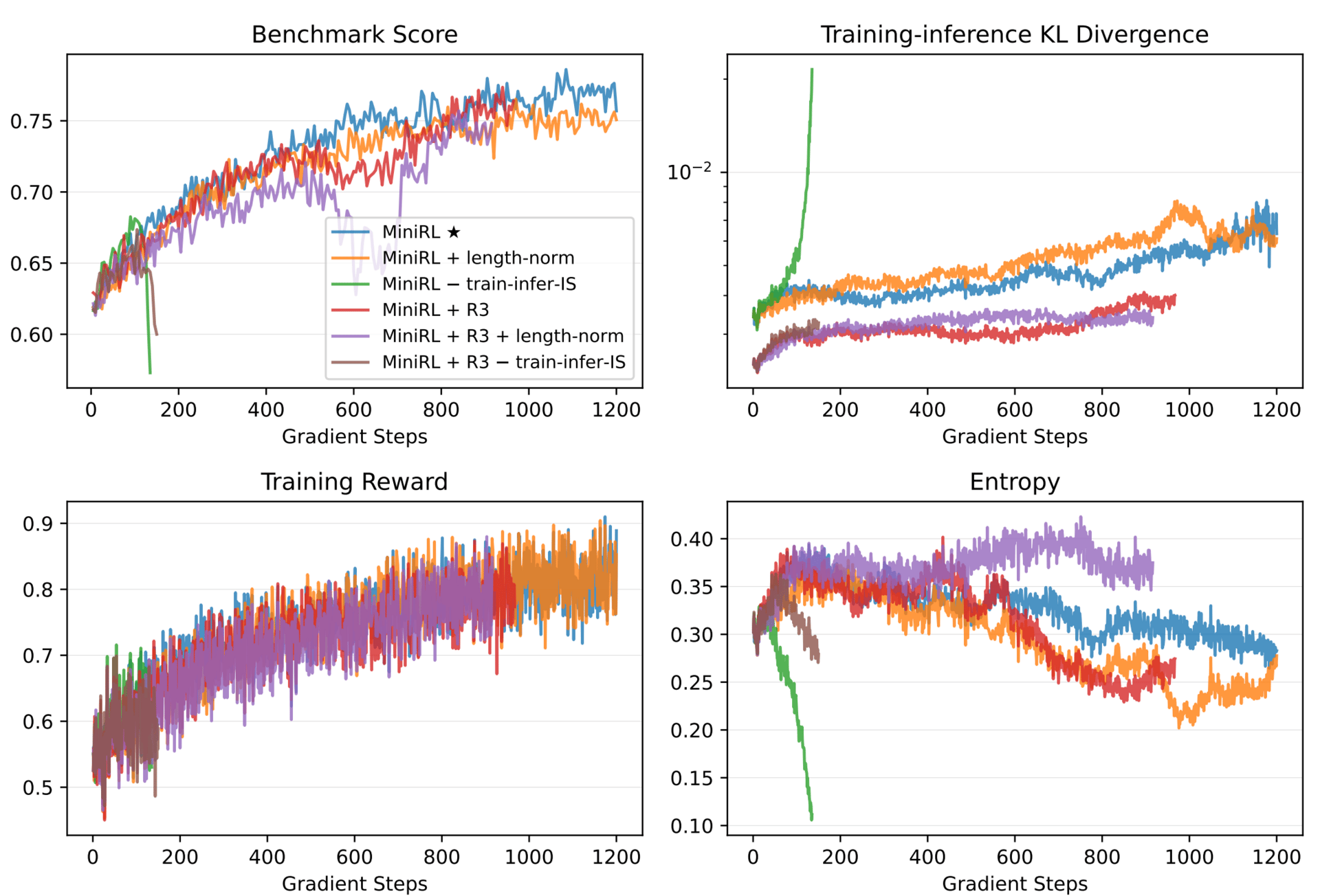 The researchers tested this extensively using a 30B parameter mixture-of-experts model. They found that for on-policy training, the basic policy gradient with importance sampling correction was most stable.
