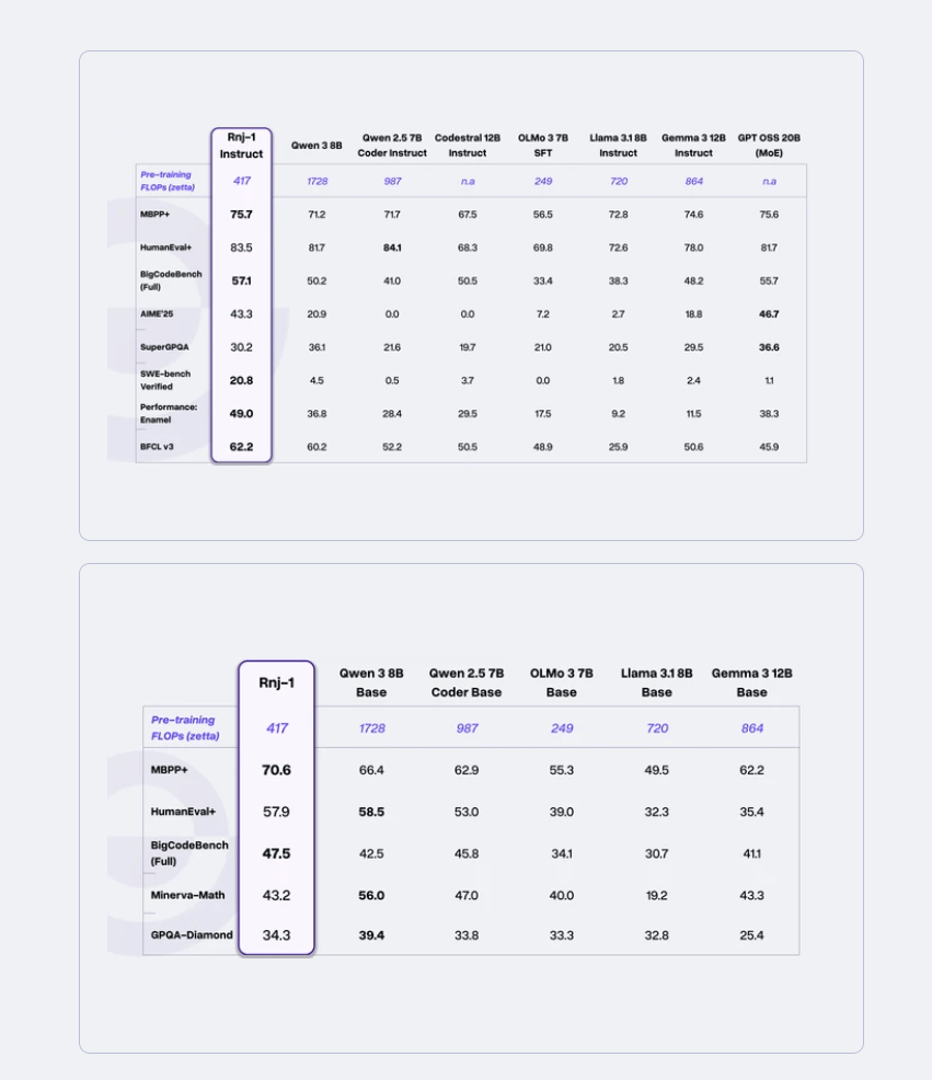 ♥ 1k Essential AI introduces Rnj-1, which is an 8B open-source base and instruct model optimized for code, math, and STEM reasoning, achieving top-tier results on SWE-bench Verified.