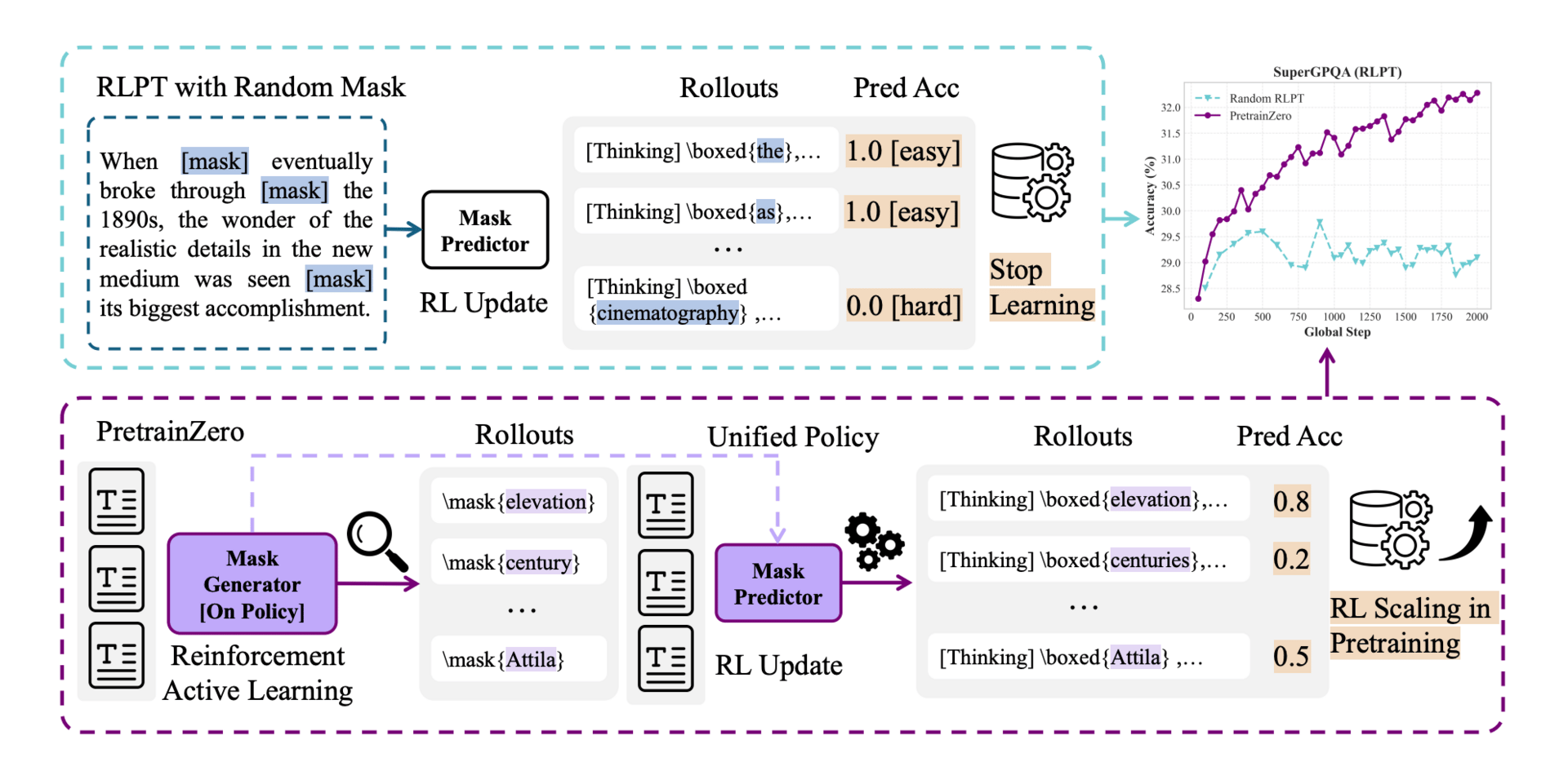 Teaching AI to learn more like humans can make more capable systems. Today's best models excel in specific areas like coding or math, but they hit a wall when trying to learn general reasoning. This is because their advanced training heavily depends on having clear, verifiable rewards or correct answers, which are scarce outside of narrow domains. This paper introduces a new framework called PretrainZero which tackles this by moving reinforcement learning into the initial pretraining phase, using only raw, unlabeled text.